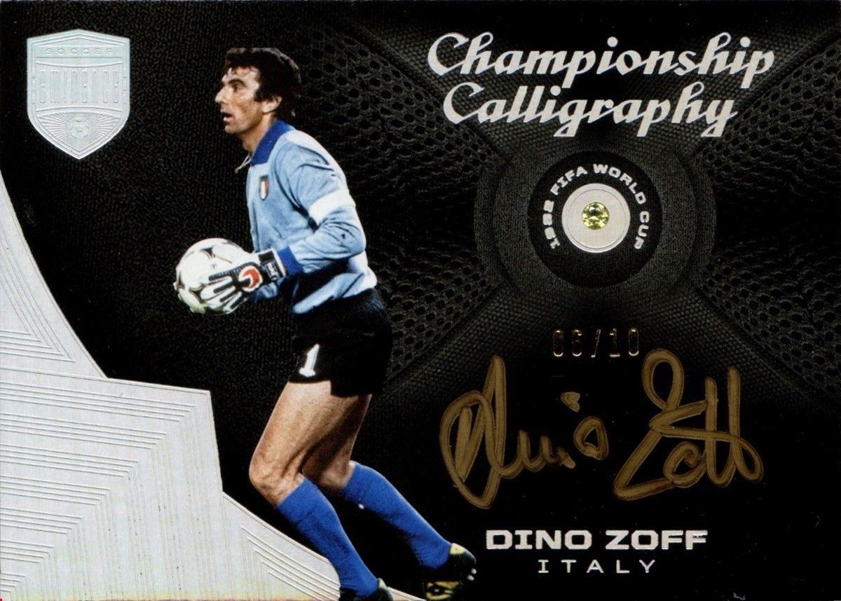 Card autografata da Dino Zoff, prodotta e certificata dalla Panini nel 2018 con tiratura 6/10 e con un vero diamante incastonato nella card.