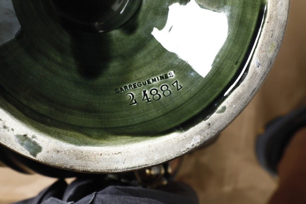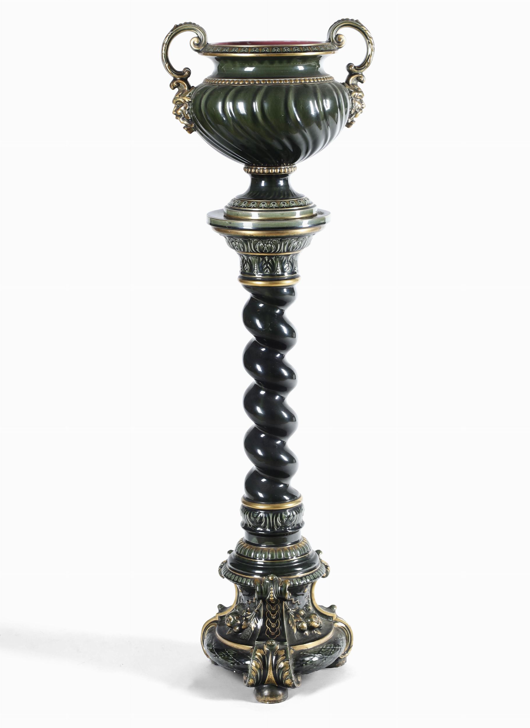 Colonna a torchon con vaso in ceramica. Sarreguemise, Francia XX secolo