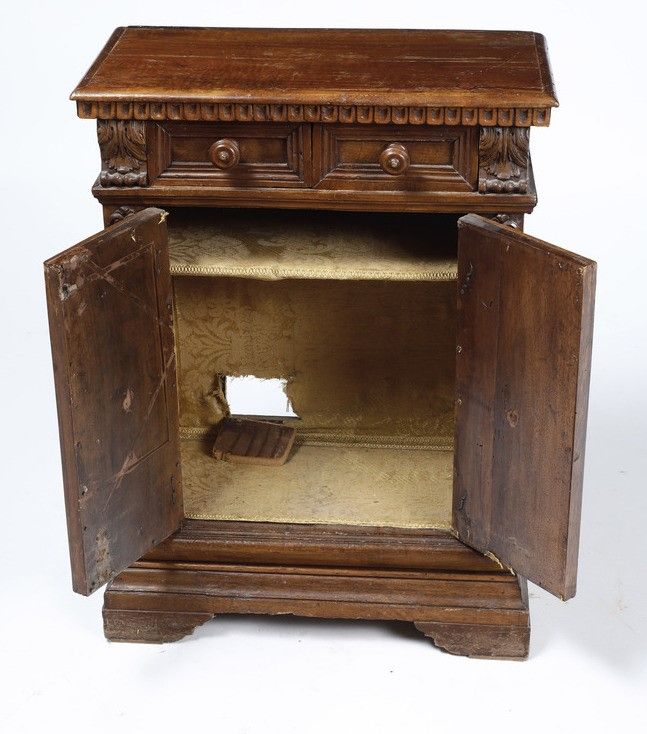 Credenzino a due ante in legno intagliato. XIX-XX secolo