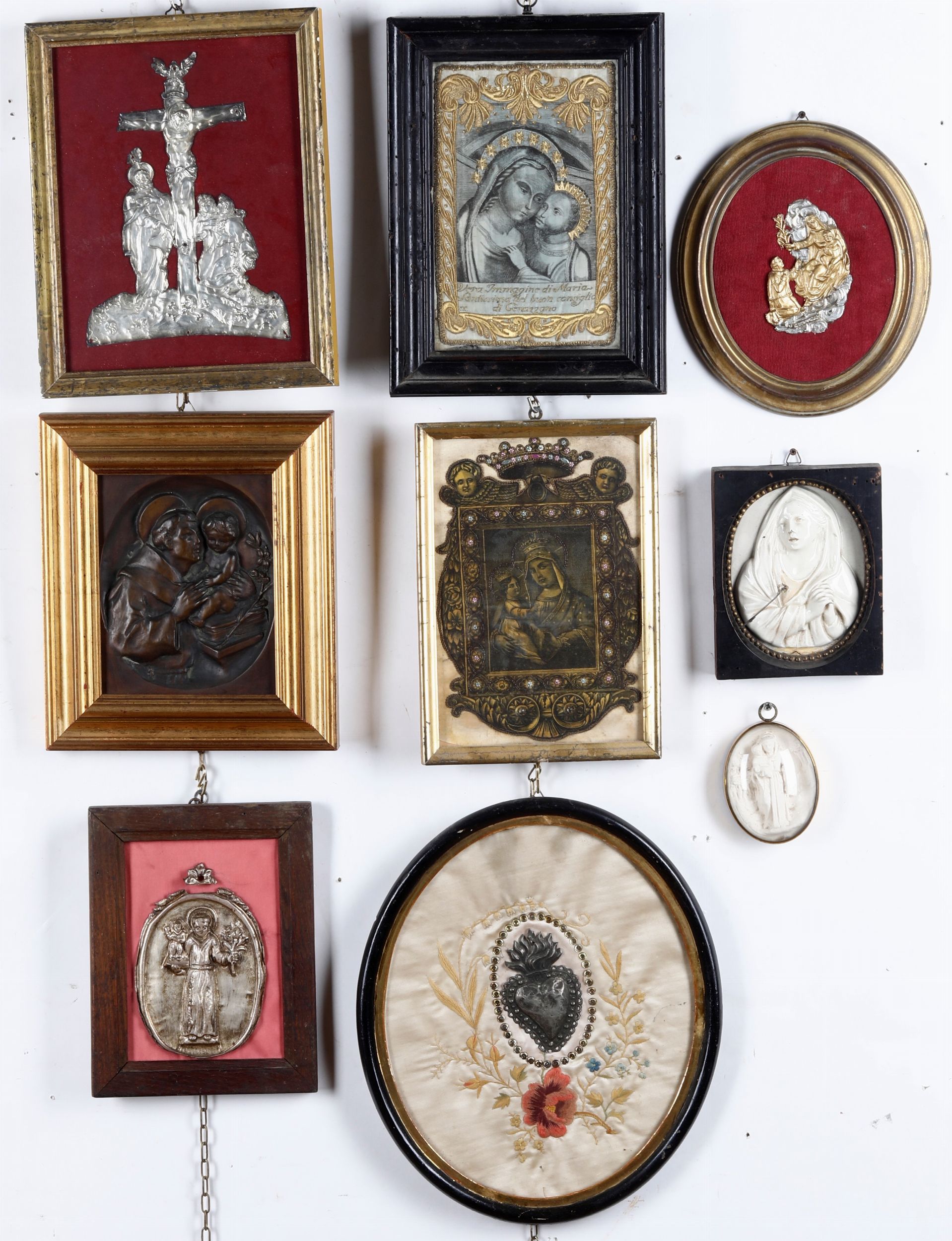 Lotto di oggetti e quadretti a tema religioso