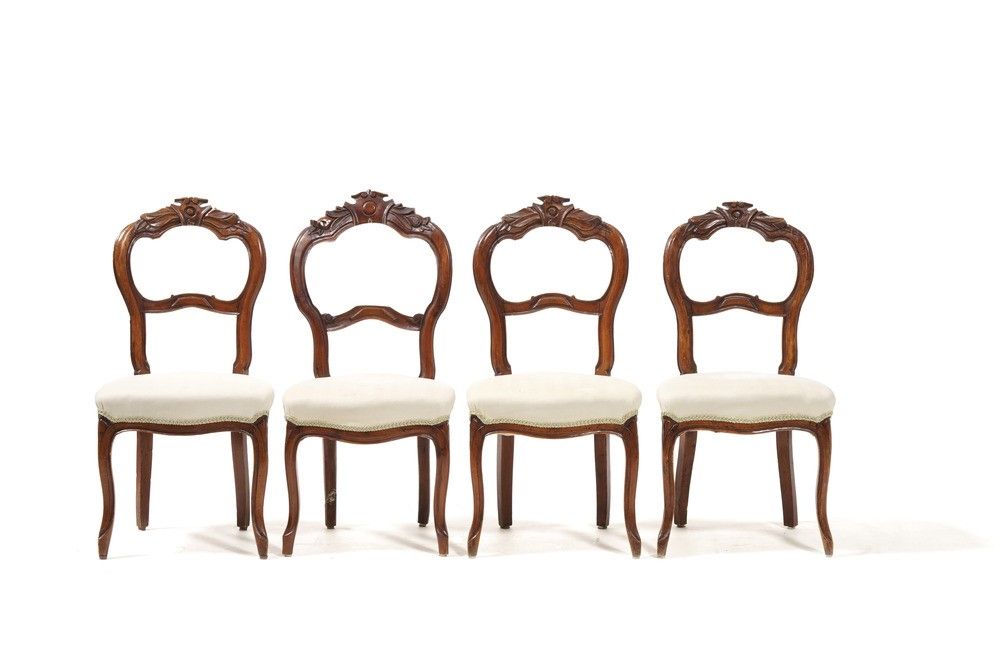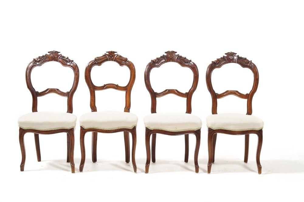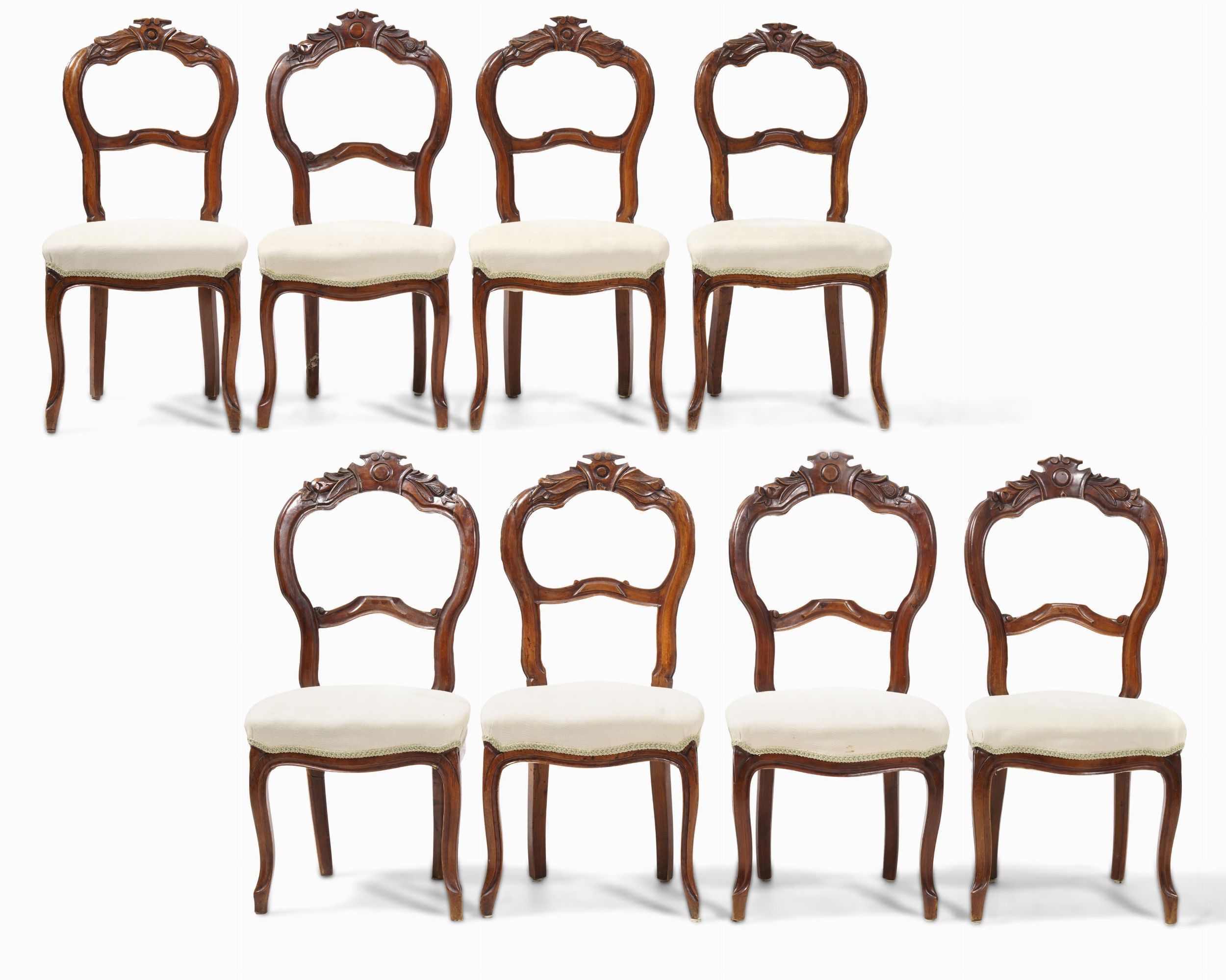 Lotto di otto sedie in legno intagliato. XIX secolo
