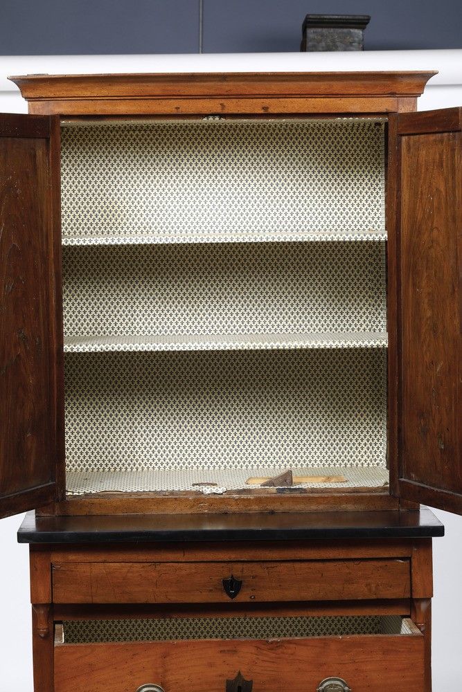 Piccolo cassettone con alzata a due ante. XVIII-XIX secolo