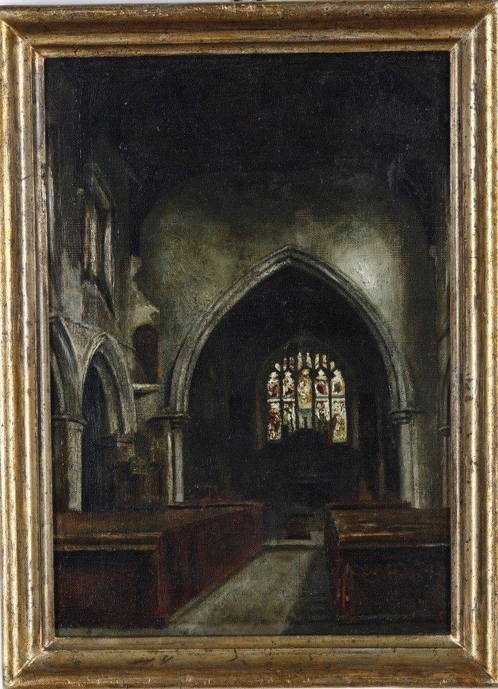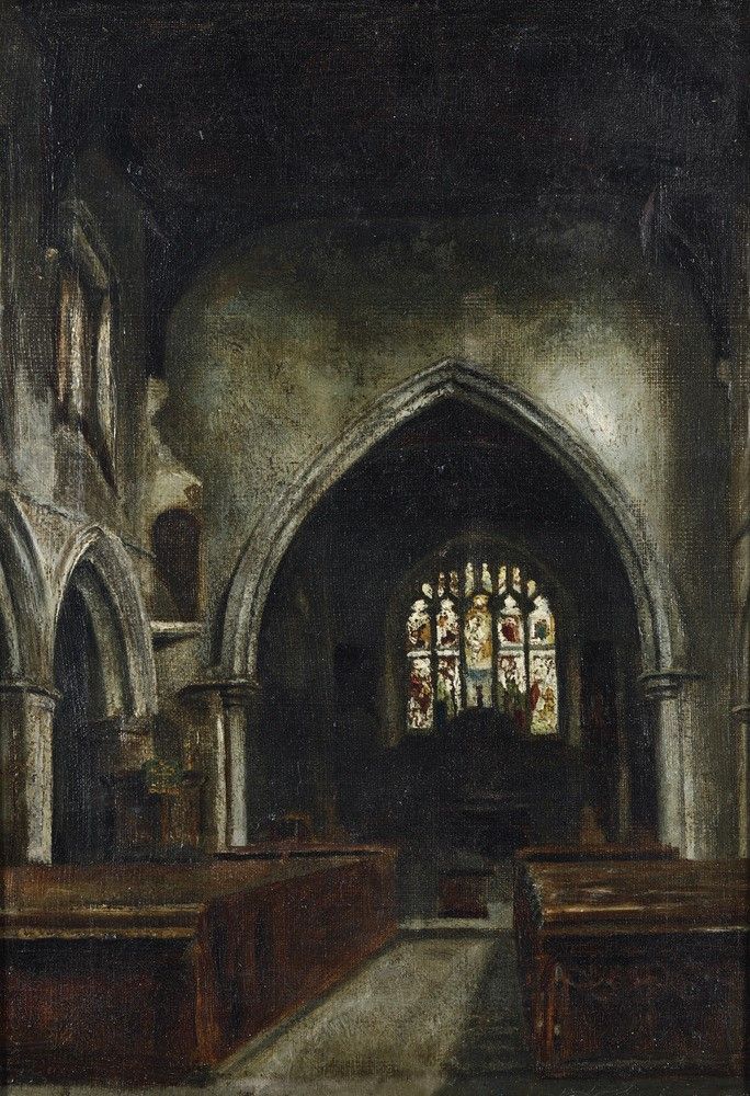 Pittore del XIX-XX secolo Interno di edificio clericale