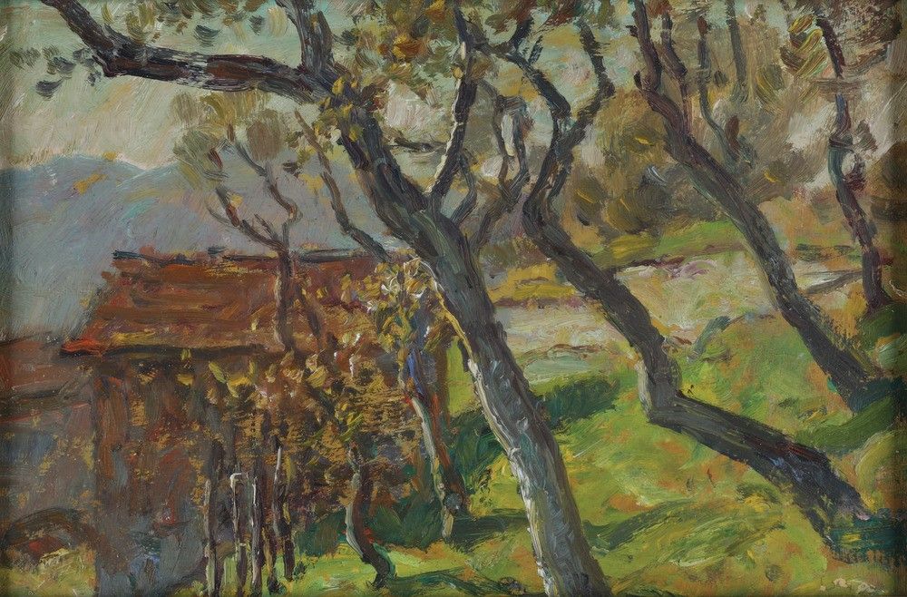 Pittore del XIX-XX secolo S. Ambrogio, lungo la strada