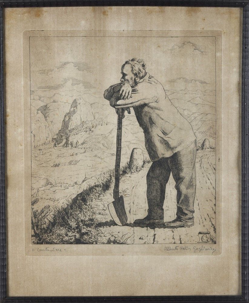 Stampa raffigurante contadino “Cantoniere” Alberto Helios Gagliardo, stampa ad a [..]
