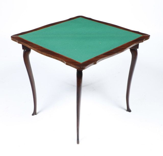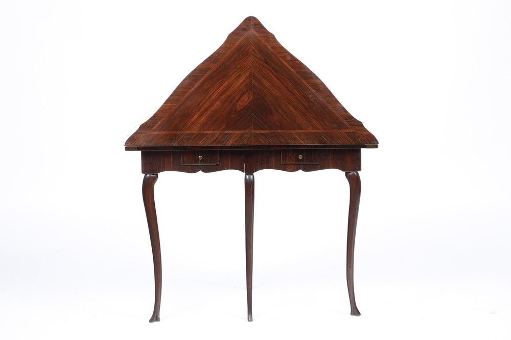 Tavolo da gioco ad angolo in legno lastronato. Genova XIX secolo