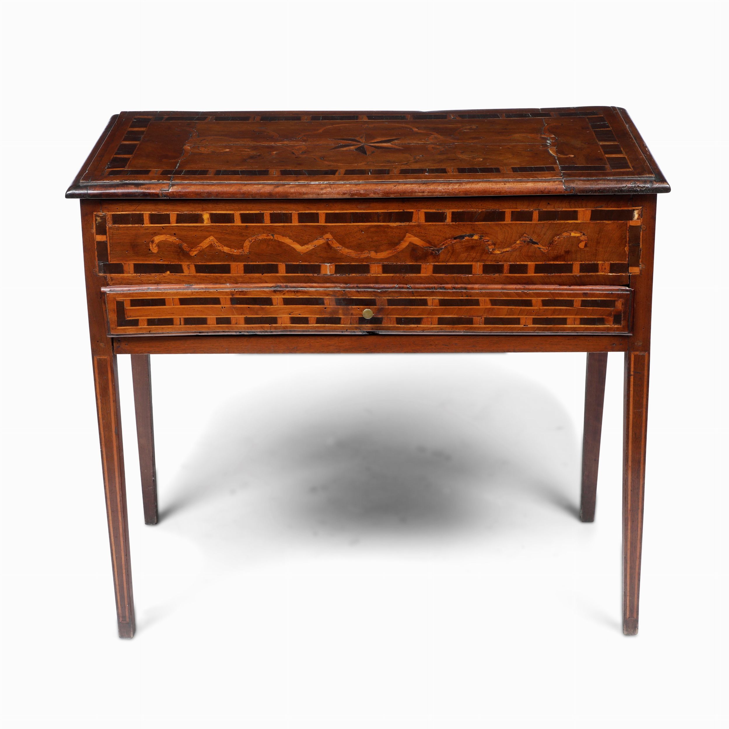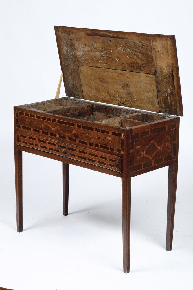 Tavolo da muro in legno filettato e intarsiato. XIX secolo