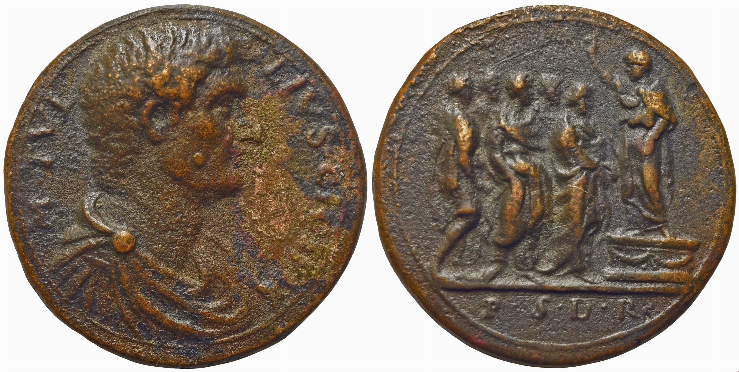 Busto a destra con mantello annodato sulla spalla. Contorno lineare