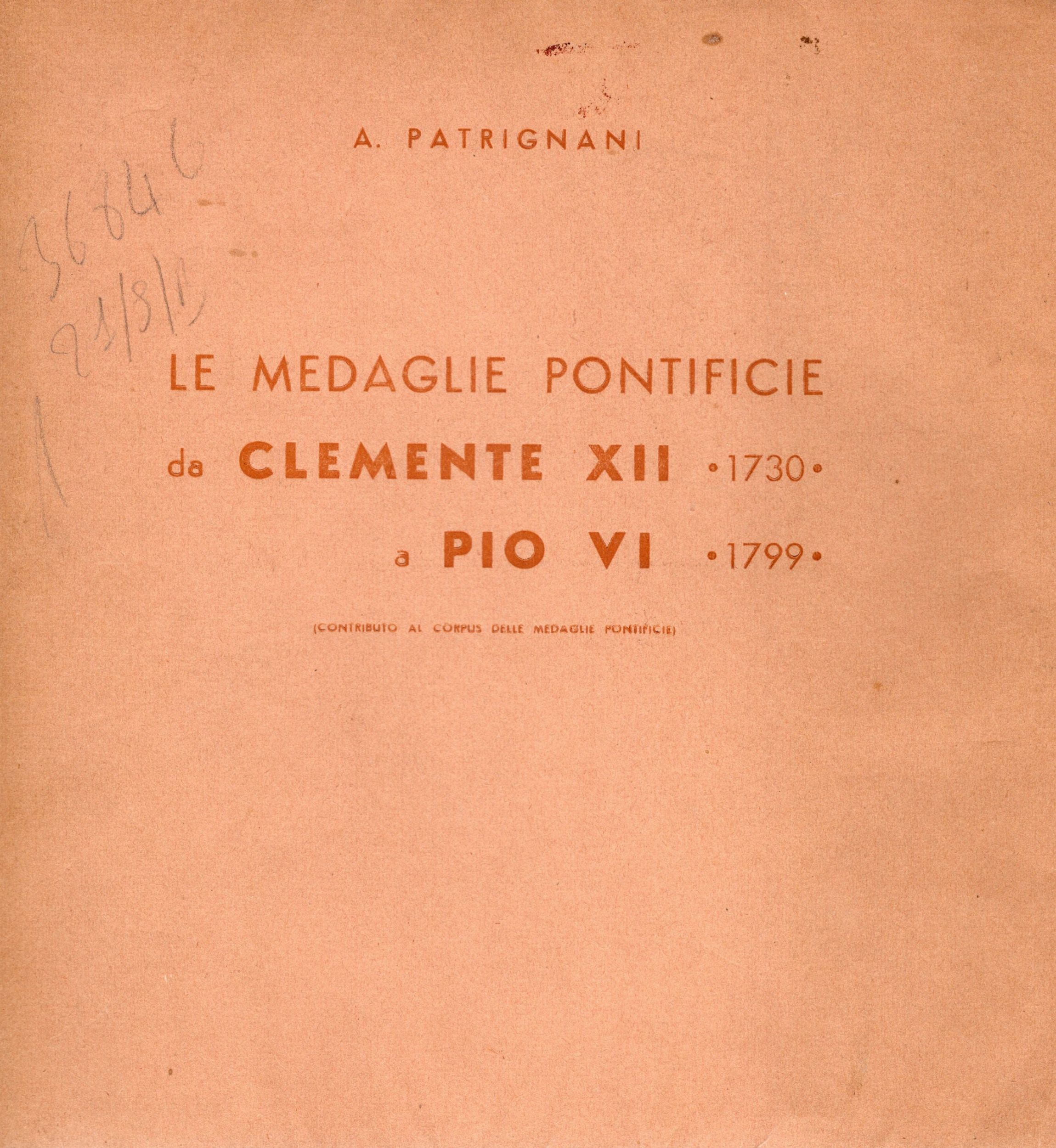 PATRIGNANI A. - Le medaglie pontificie da Clemente XII 1730 a Pio VI 1799. Bologna, [..]