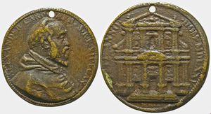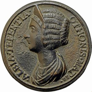Piombo fuso, mm. 79, gr. 171 D\ ALFONSVS. ESTENSIS. Busto di Alfonso I d'Este verso destra con [..]