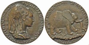 Opus Matteo De' Pasti (1441-1468) AE fusione (42.12 g - 41.3 mm) D/D ISOTTAE ARIMINEN M CCCC XLVI; busto velato [..]