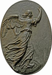 SCUOLA ITALIANA. Sec. XVIII. Pace in Ae fuso centinata; mm 165,6 x 106,5; gr 330,5. Patina marrone chiaro [..]