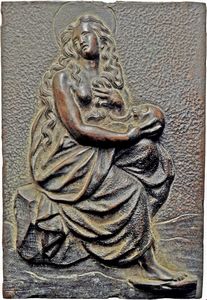 sec. XVI Bronzo fuso rettangolare, dorato; mm 133,1 x 93; gr 208,8. La Vergine con aureola [..]