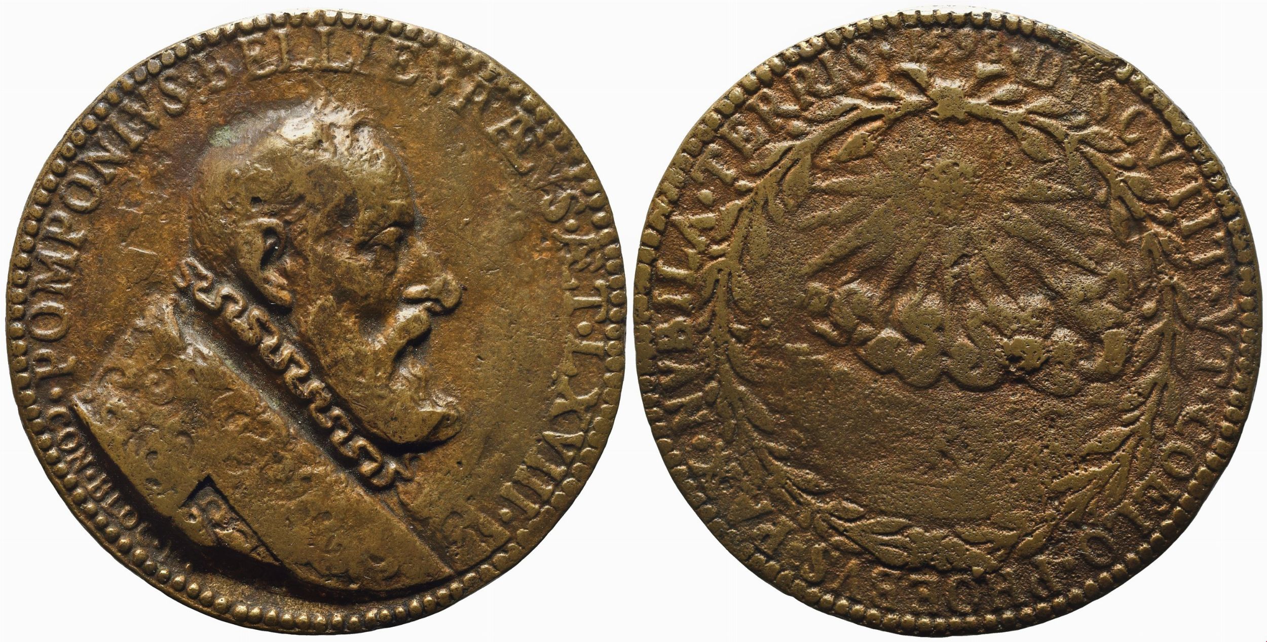 Busto verso destra con colletto spagnolo, sotto la busto CON. BLOC. F.