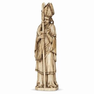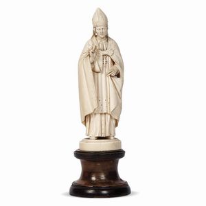 SCULTURA, GERMANIA, SECOLO XVIII in avorio raffigurante un Vescovo benedicente, cm 18,5x6x5,5, su base lignea [..]
