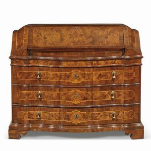 RIBALTA, VERONA, SECOLO XVIII in noce e radica, di linea sagomata dal fronte e profili mossi, piano a ribalta [..]