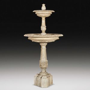 GRANDE FONTANA DA CENTRO, TOSCANA, SECOLO XVIII in marmo bianco, a doppia vasca, bocciolo centrale sormonta la [..]