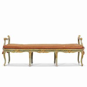 PANCHETTA, ITALIA CENTRALE, SECONDA METÀ SECOLO XVIII in legno intagliato e laccato d’azzurro, seduta [..]