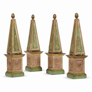 QUATTRO OBELISCHI, PIEMONTE, FINE SECOLO XVIII in legno e papier-mach dipinti in policromia nei toni del verde [..]