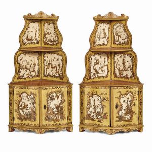 COPPIA DI PICCOLI CANTONALI, PIEMONTE, SECOLO XVIII in legno laccato e decorato ad arte povera sui toni del giallo, [..]