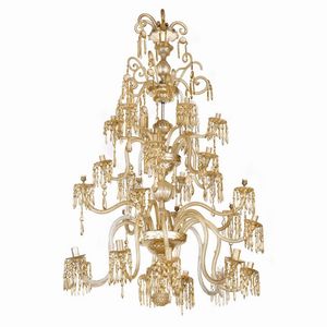 GRANDE LAMPADARIO, FIRENZE, FINE SECOLO XVIII in vetro color paglierino a ventidue luci e quattro palchi; gli [..]
