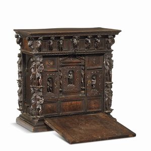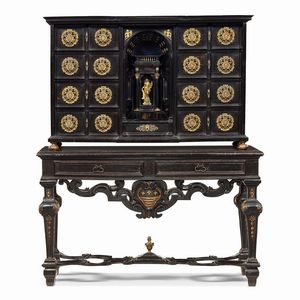 STIPO MONETIERE, GENOVA, SECOLO XVII in legno intagliato ed ebanizzato, di forma architettonica su base modanata. [..]