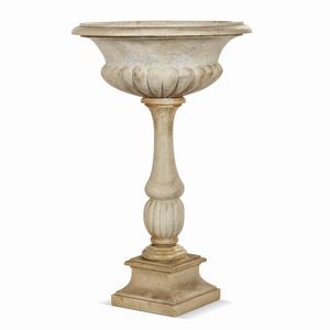 VASCA, ITALIA CENTRALE, SECOLO XVI in marmo scolpito, corpo di forma troncoconica decorato da ampie baccellature [..]