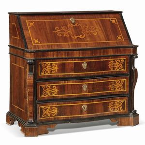 CANTERANO, LOMBARDIA, FINE SECOLO XVII in legno ebanizzato, piano aggettante e fronte a quattro cassetti impreziositi [..]