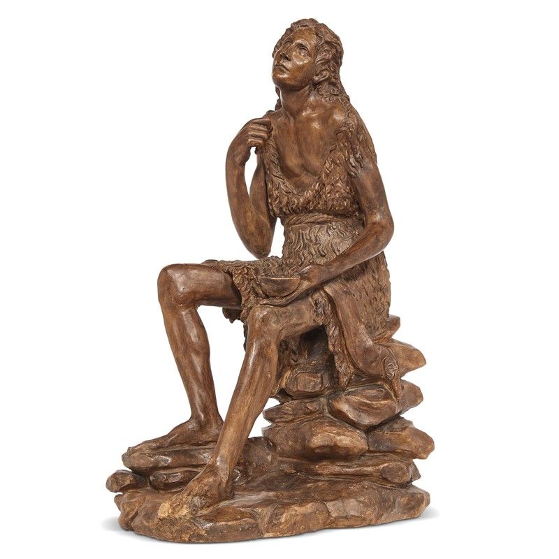 Circle of “Maestro del San Giovannino", Saint John in the desert, circa 1505/1510, patinated terracotta, 46x21x32 cm
