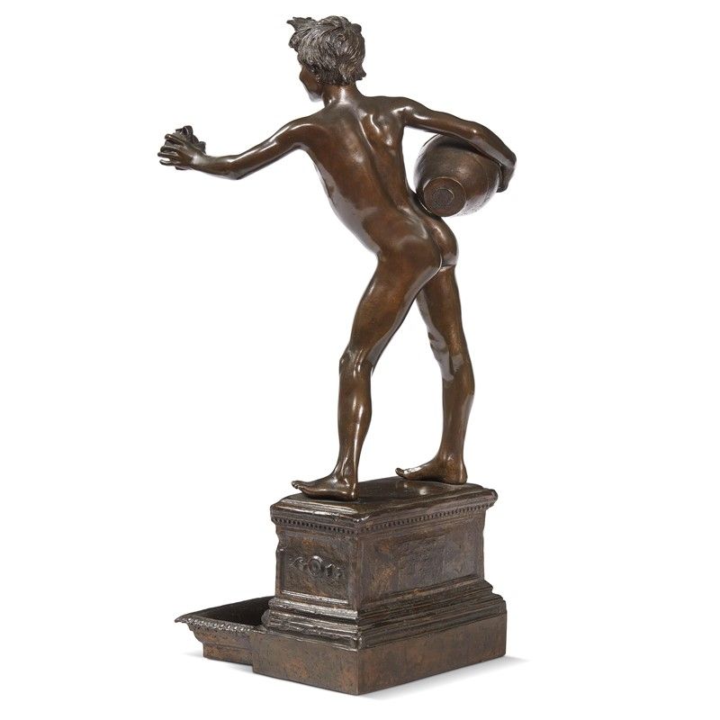After Vincenzo Gemito THE WATER-CARRIER bronze, 55x19x21 cm signed and stamp of the foundry on the amphora, on the reverse of the base inscribed Dall' originale / prop. del Re di Napoli Francesco I / Napoli Gemito