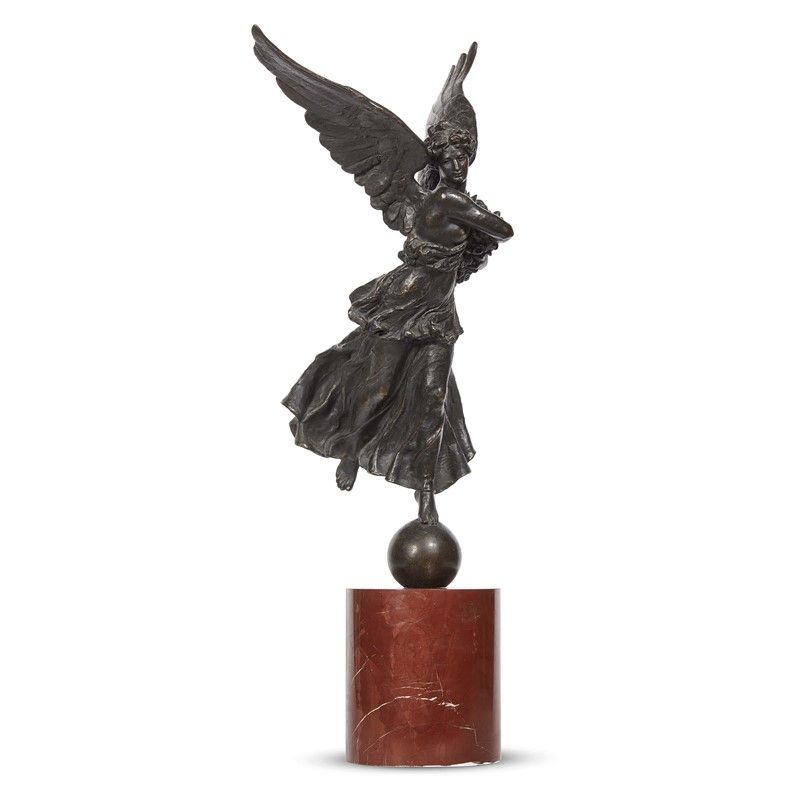 bronze, 66x45x25, red marble cilindric base, h. 20 cm diam cm 18