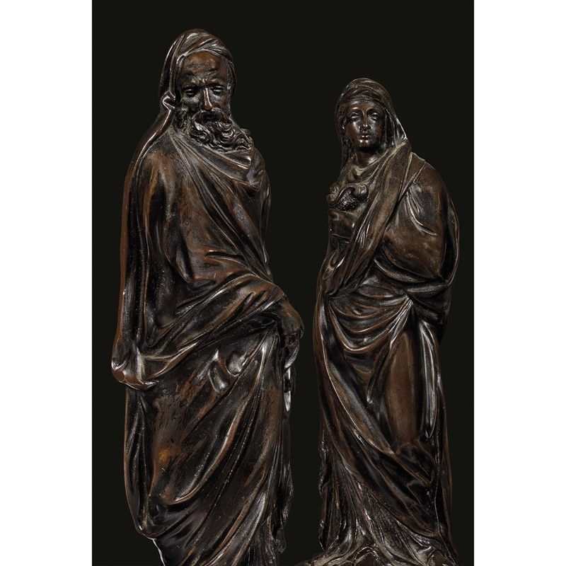 Florence, 18th century, A pair of allegorical figures, bronze, 23,2x8x7 cm, on black marble bases (bases 2,6x9x9 cm)