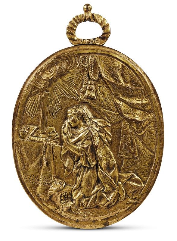 Germany, early 18th century, The repetant Magdalene, gilt bronze, 14,4x9,5 cm