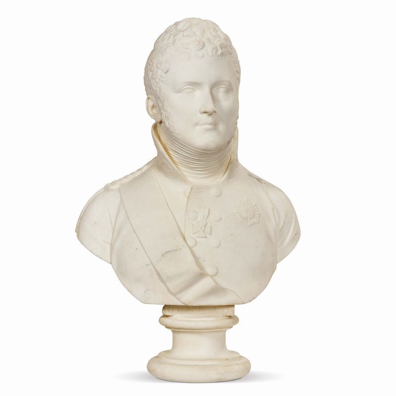 Dell’inedito busto in marmo presentato in catalogo, secondo un parere scritto di Fernando Mazzocca, esiste un’altra versione datata 1840, in cui l’imperatore è rappresentato in clamide antica, analogamente al ritratto fatto allo zar da Thorvaldsen durante un soggiorno a Varsavia nel 1820.