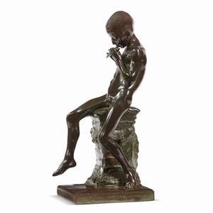 Scuola napoletana, sec. XIX-XX PESCATORELLO CON GRANCHIO bronzo, cm 114x56x35 Neapolitan school, 19th-20th century [..]