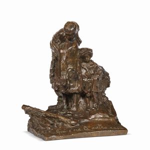 Michele Vedani (Milano 1874 - 1969) GIU' C'ERA LA NOSTRA CASA bronzo, cm 28x21x17 firmato, titolato alla base [..]