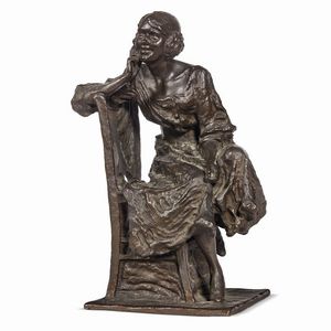 Scuola italiana, sec. XIX SOGNANDO bronzo, cm 48x21x28, base in marmo verde, cm 2x21,5x28 firmato Celini Italian [..]