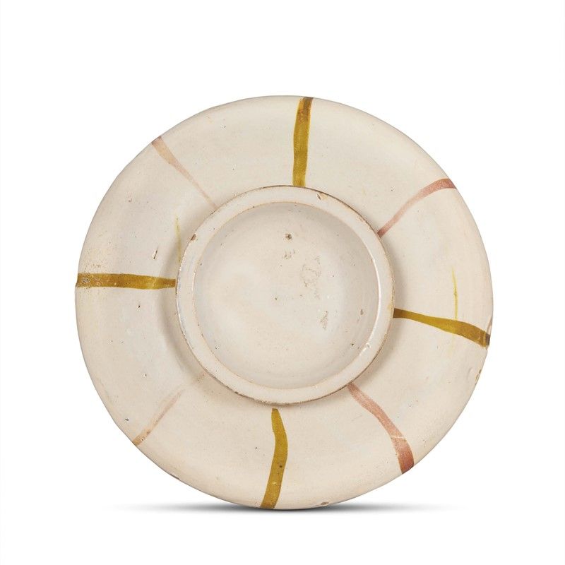 in maiolica dipinta in policromia con lustro dorato; diam. cm 22, alt. cm 5,8
