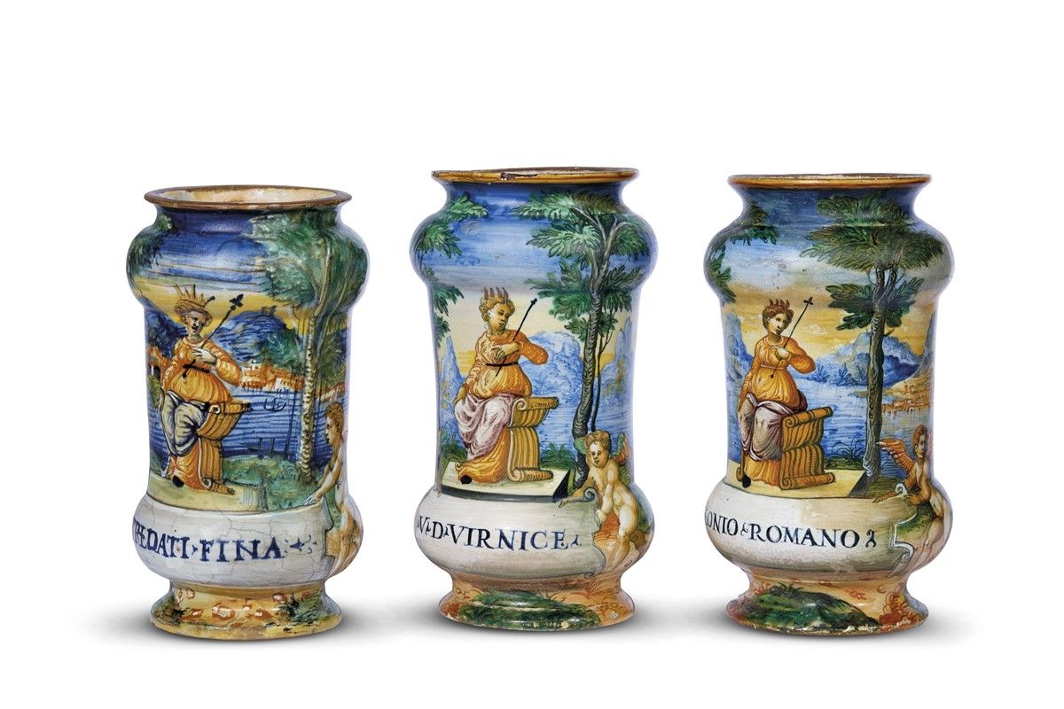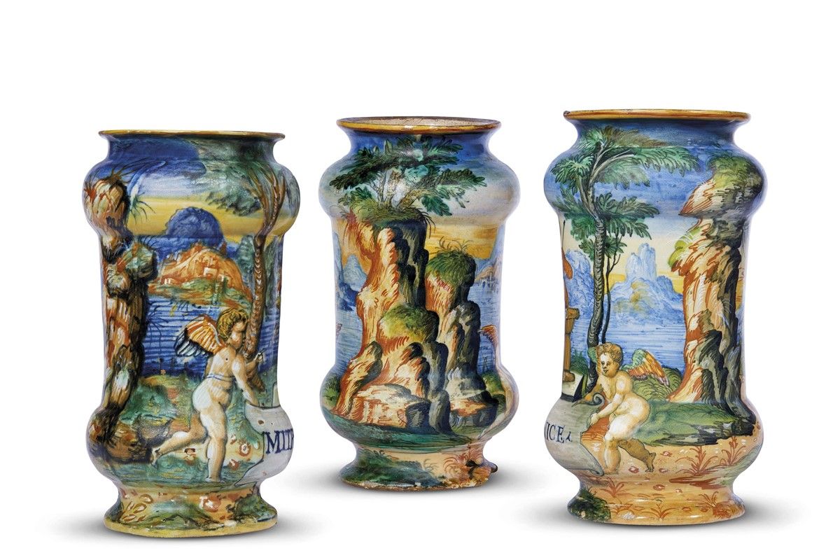 THREE PHARMACY JARS (ALBARELLI), WORKSHOP OF ORAZIO FONTANA, CIRCA 1565-1570