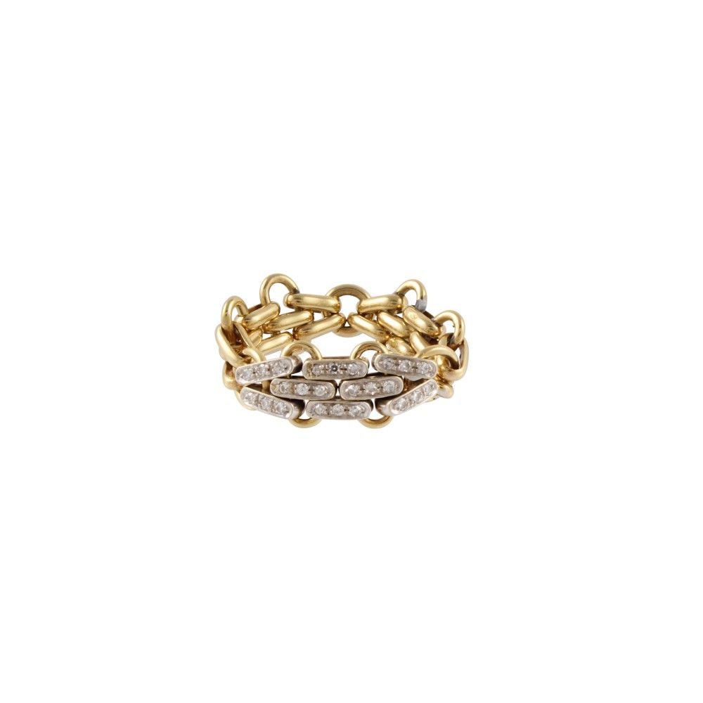 in oro giallo e bianco a maglia morbida ornato da diamanti, gr. 9,5.