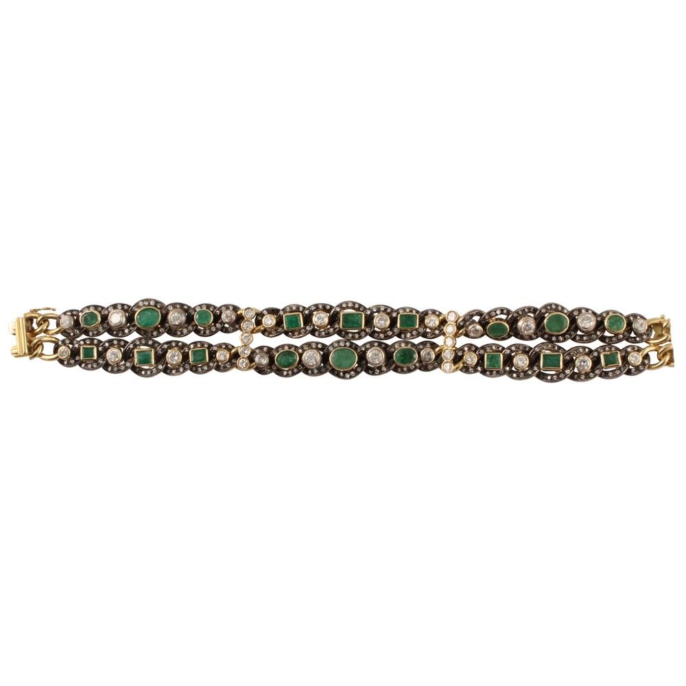 a doppia maglia groumette in oro e argento ornato da diamanti del peso complessivo di 6 ct ca. (quattro mancanti) e smeraldi, gr. 110,7.