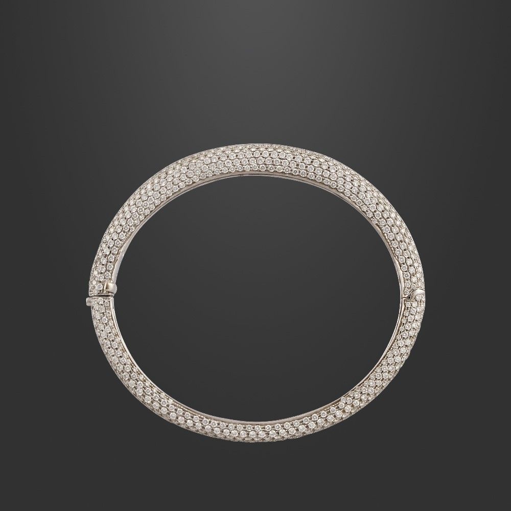 rigido in oro bianco con pavé di brillanti del peso complessivo di 7 ct ca., gr. 39,2.