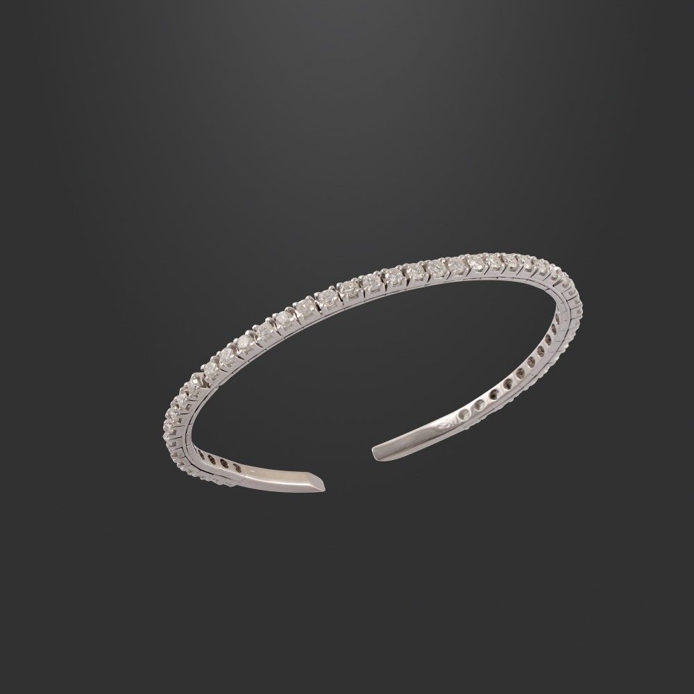 rivière flessibile in oro bianco con brillanti del peso complessivo di 2,2 ct ca., gr. 14,3.