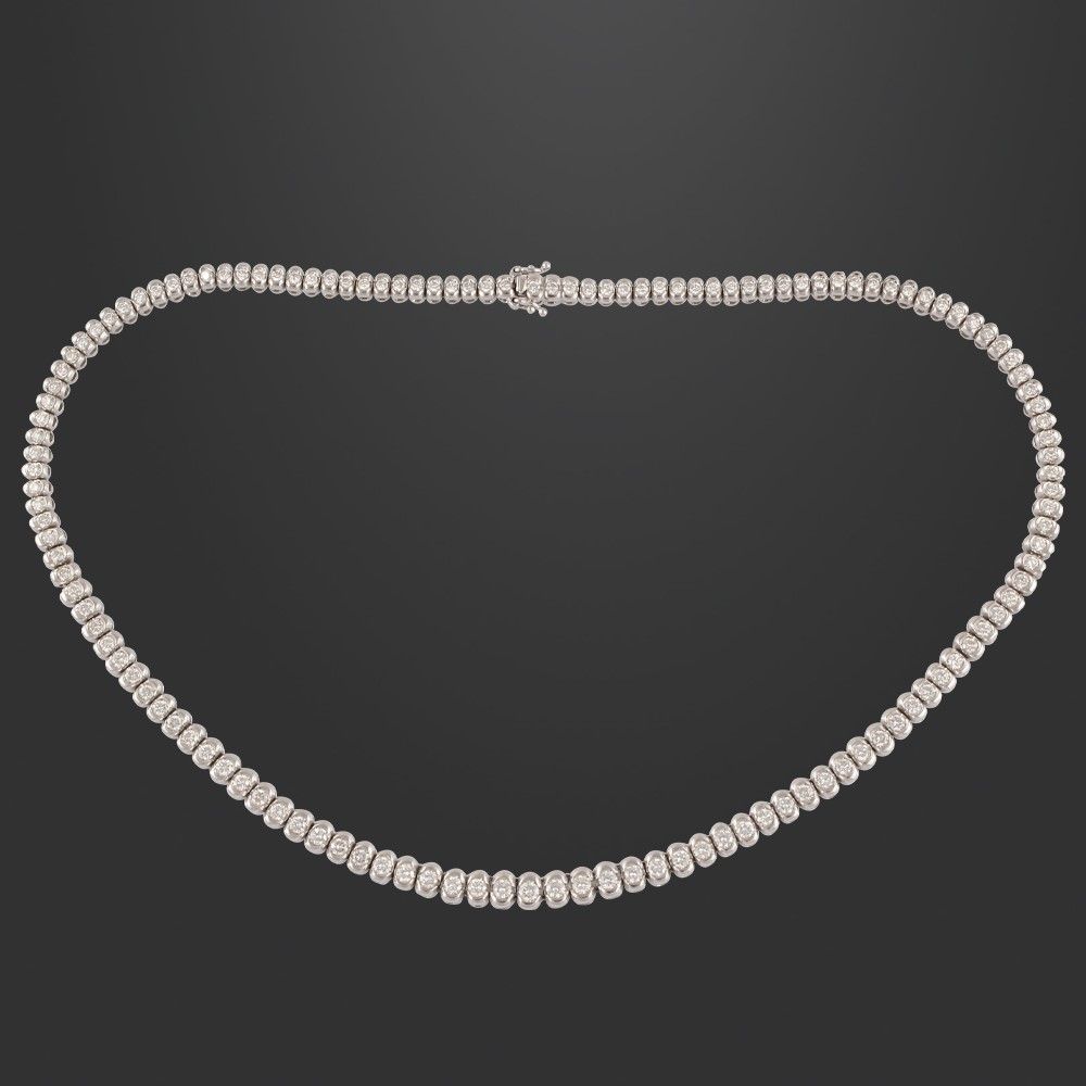 rivière a scalare in oro bianco con brillanti del peso complessivo di 12,20 ct ca., gr. 41,2.