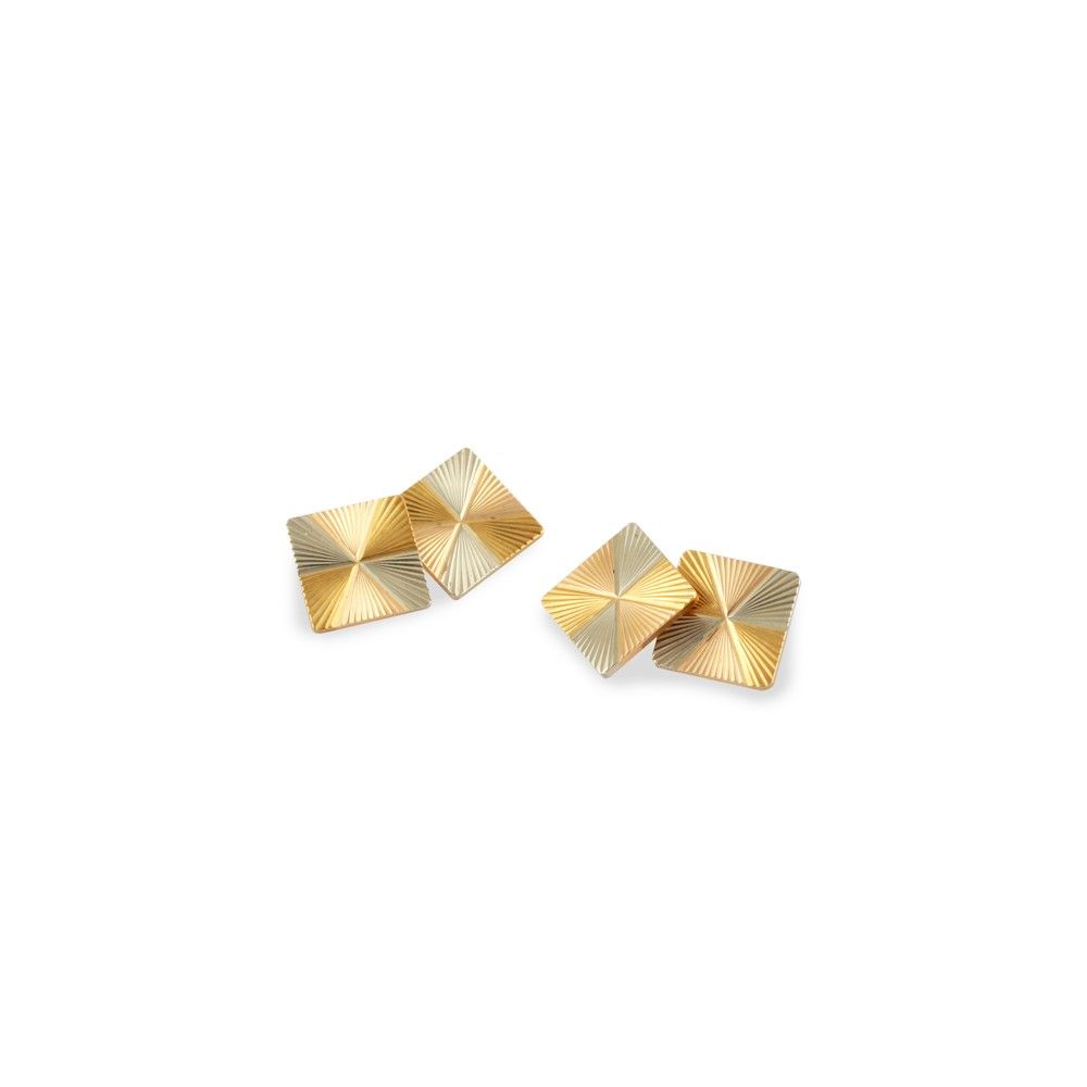 in oro giallo e bianco a forma quadrata con disegno a raggiera, gr. 13,4. Corredati da custodia originale.