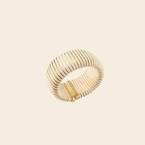 in oro giallo, bianco e smalto color crème, gr. 130,7. Misura regolabile