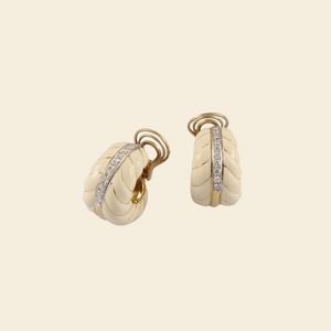 a clip in oro giallo e bianco a semicerchio con motivo costolato in smalto color crème e nervatura centrale in [..]