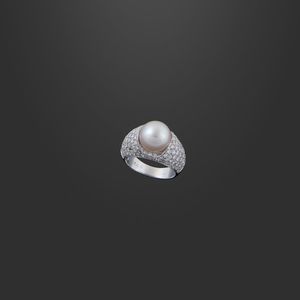 in oro bianco con perla 9,8 mm e pavé di brillanti a contorno del peso complessivo di 1 ct ca., gr. 10. Misura [..]