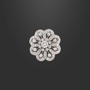 a rosone traforata in oro bianco con brillanti di cui uno al centro di dimensioni maggiori del peso di 0,80 ct [..]