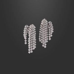 a clip in oro bianco a cascata di brillanti del peso complessivo di 22,50 ct ca., gr. 32,4. Lunghezza 6 cm [..]